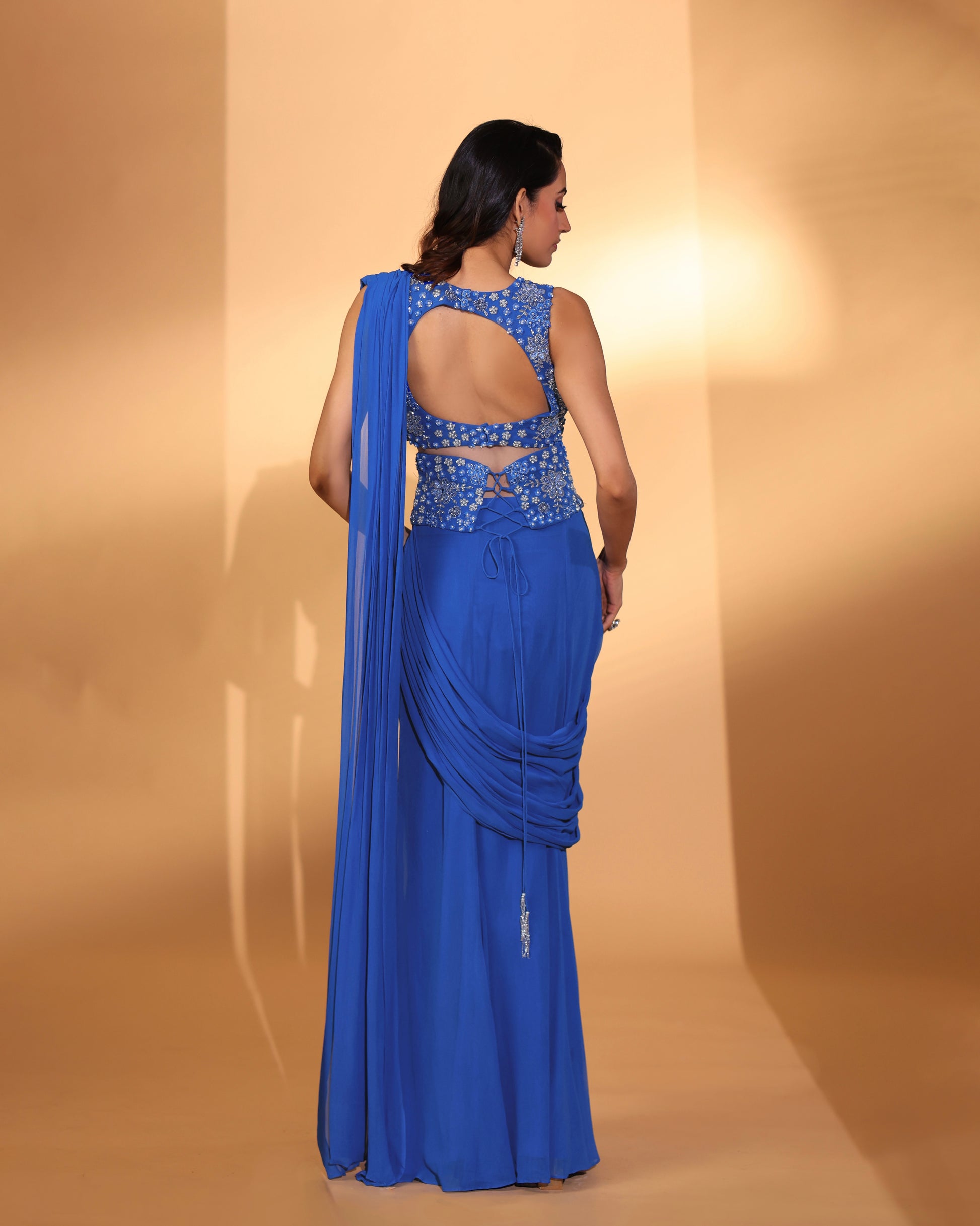 Cobalt blue saree set.