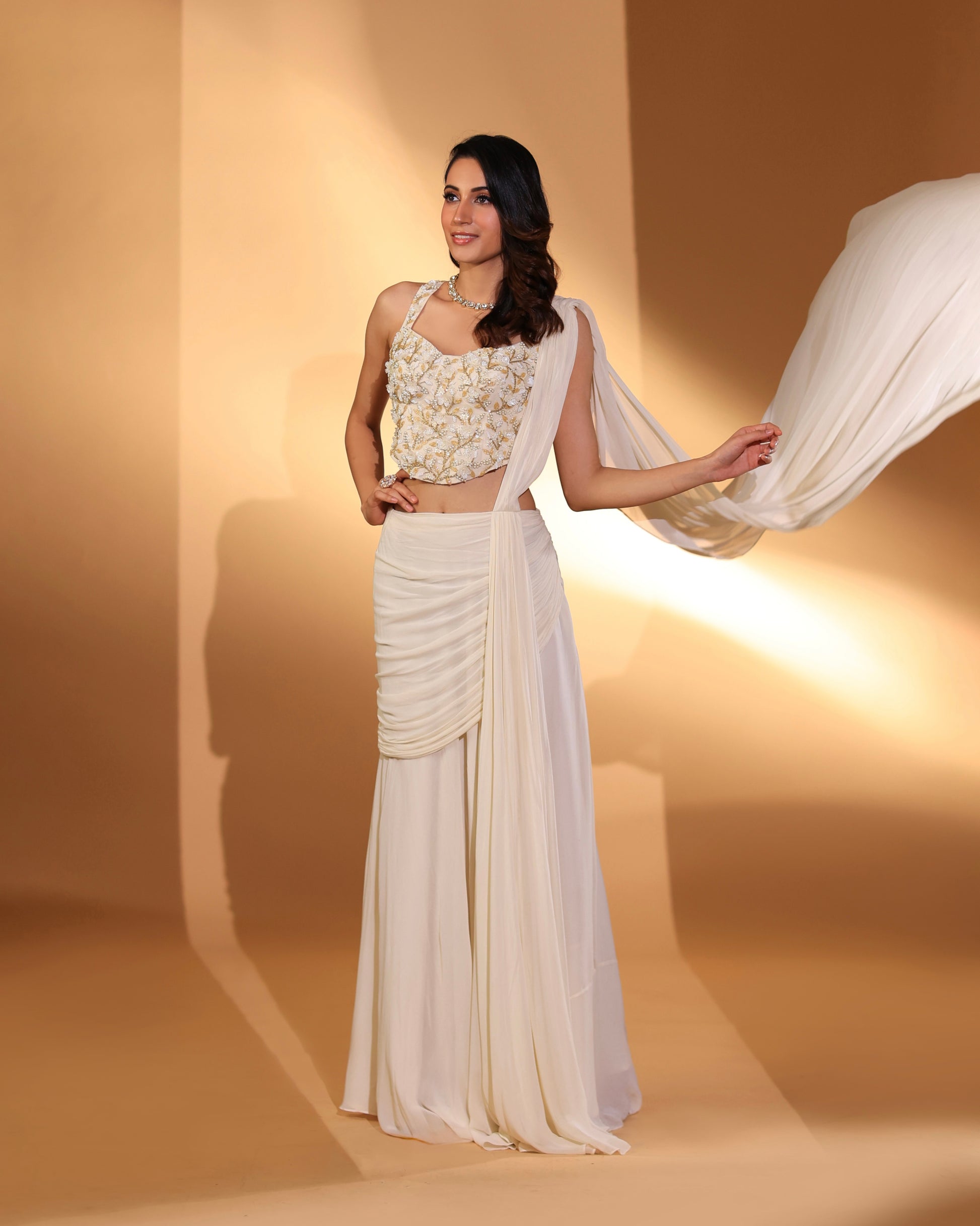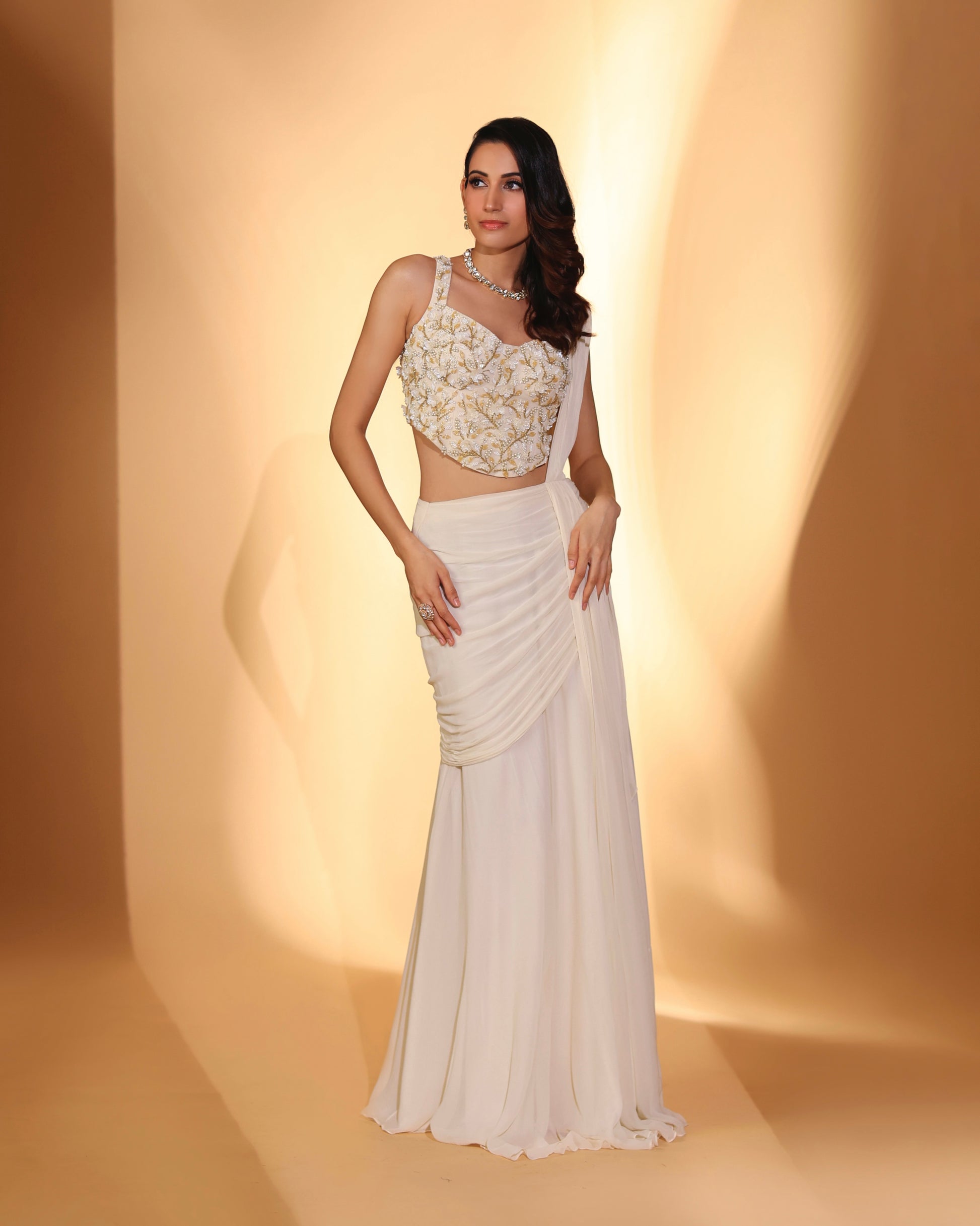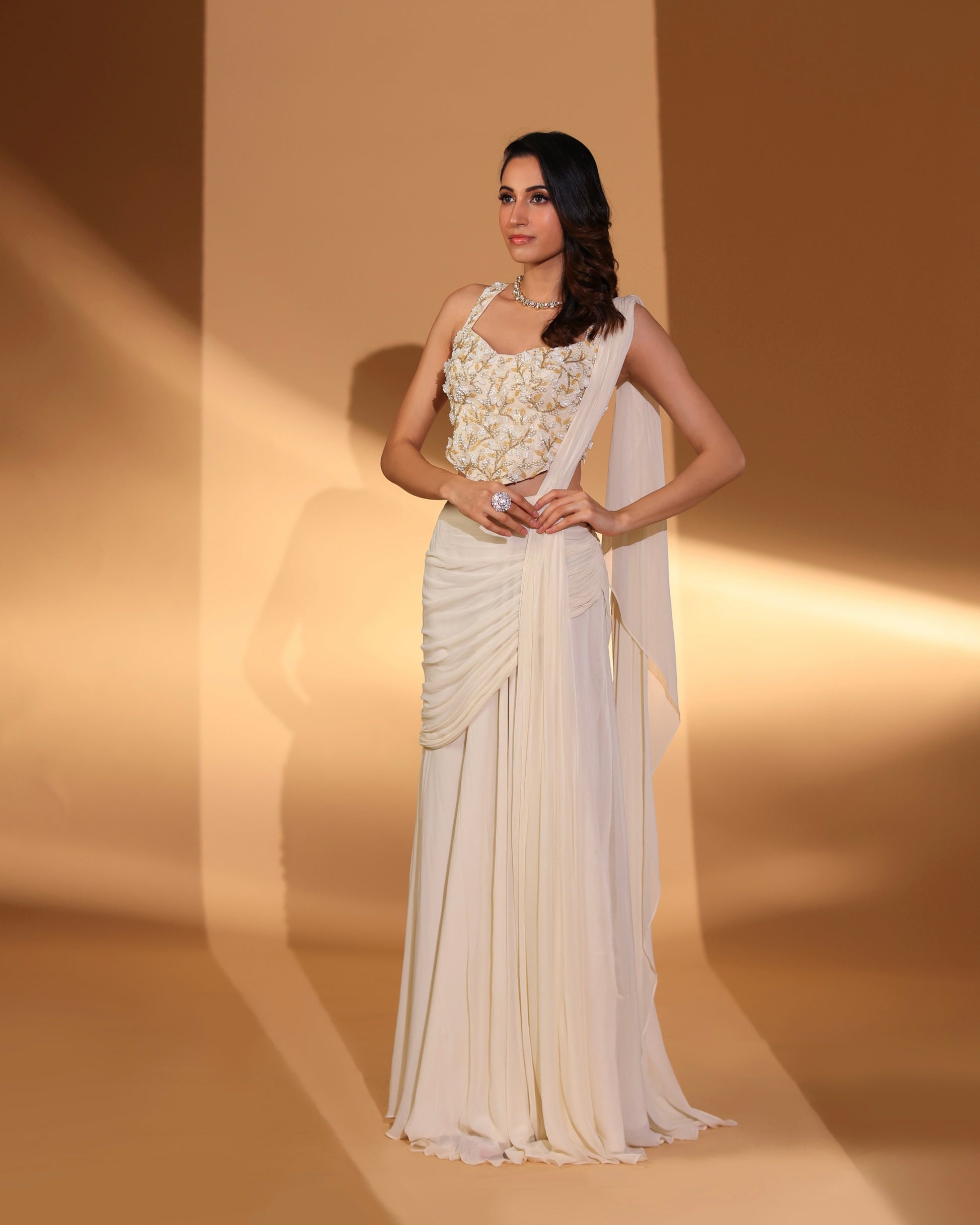 We note that additional charges are applicable on all orders being customized that involve any kind of addition in embroidery/fabric. Further, for plus sizes, 'XL' and above (bust size 40.5 inch and above), we charge a 10% to 15% additional charge on the retail product price. We also charge an additional fee for all alterations done on products bought at a sale/discount. There will be additional shipping charges for all international orders.