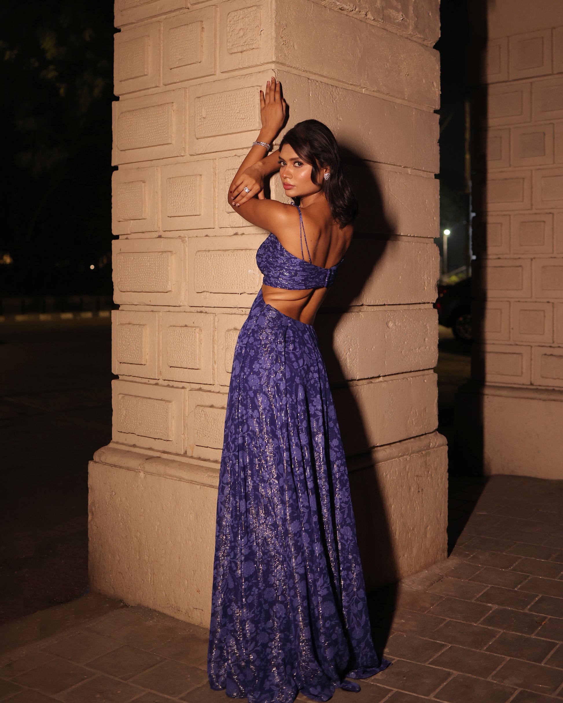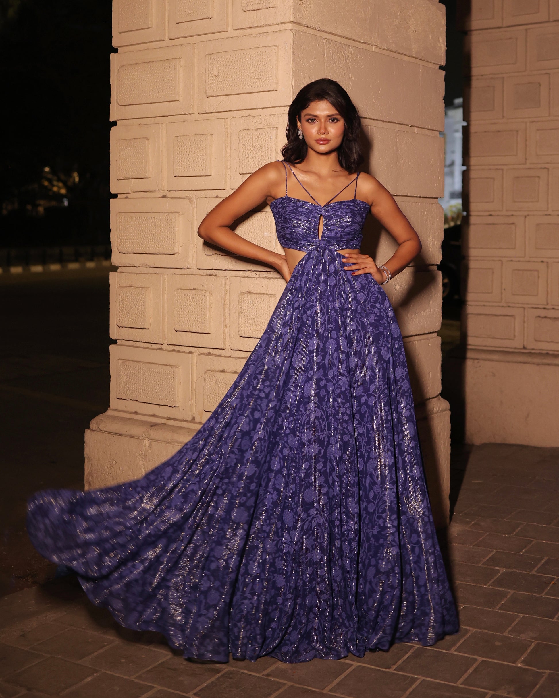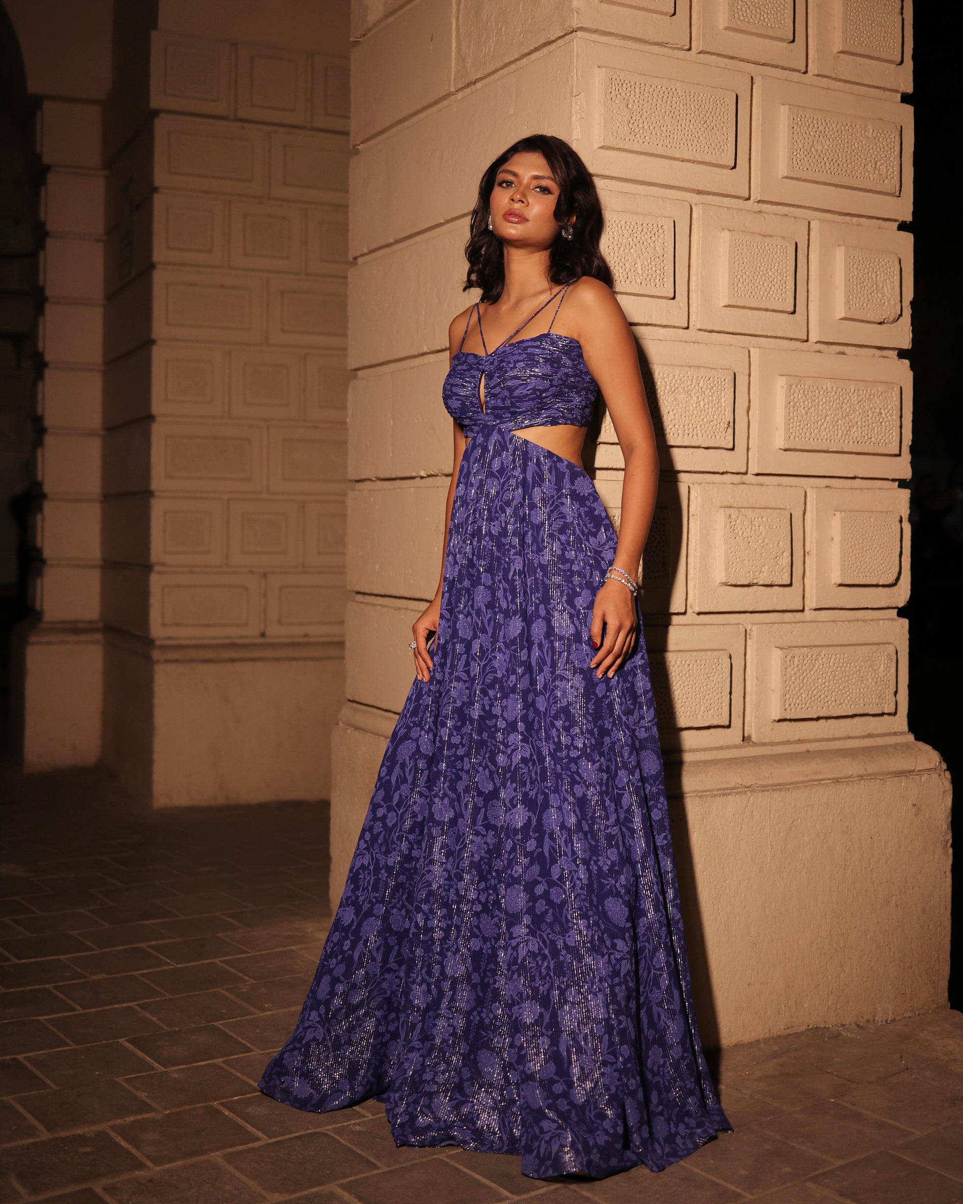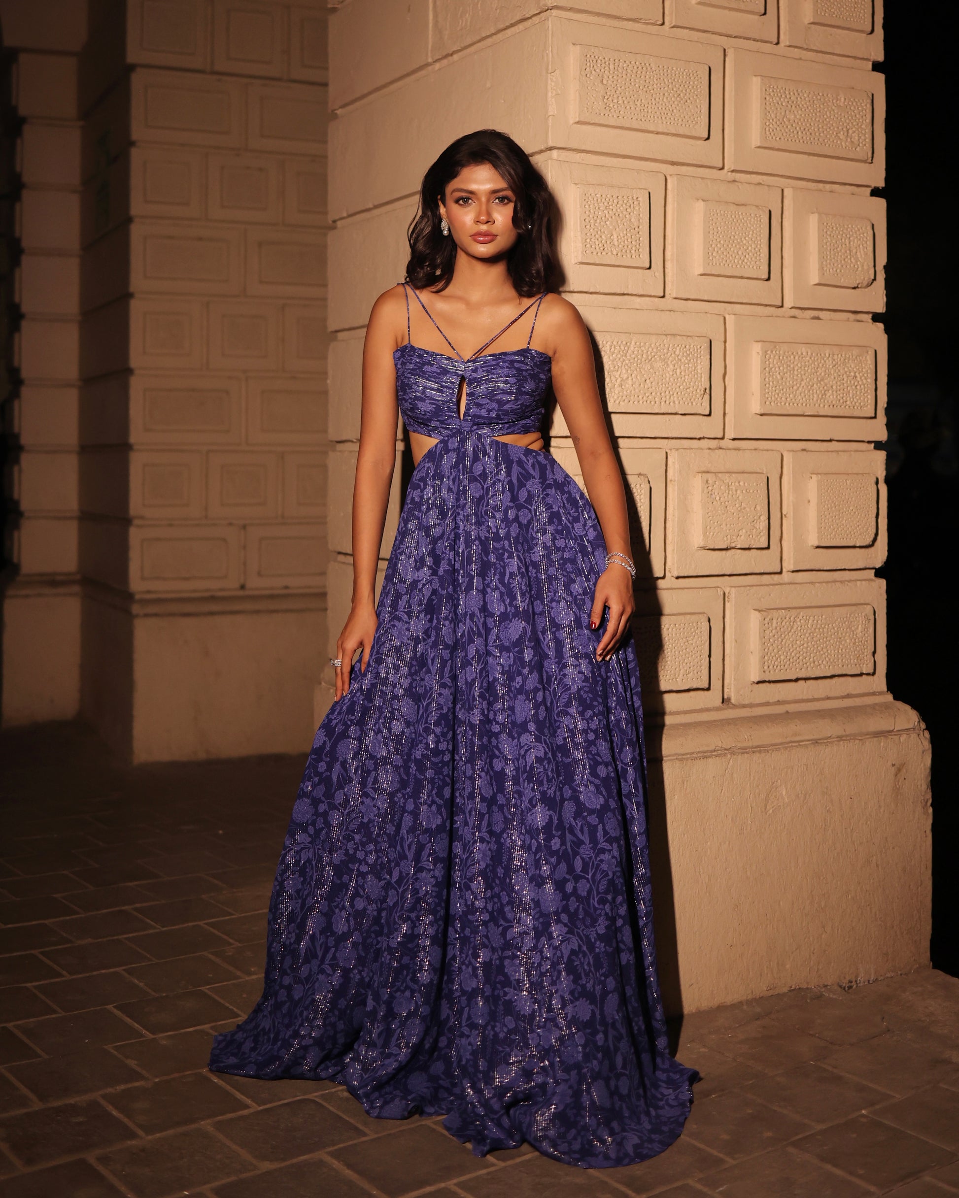 Royal blue printed gown.